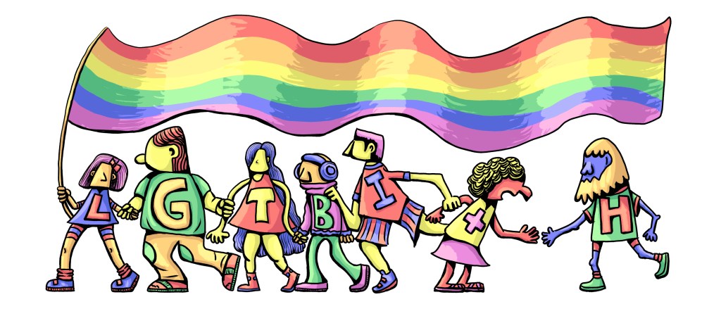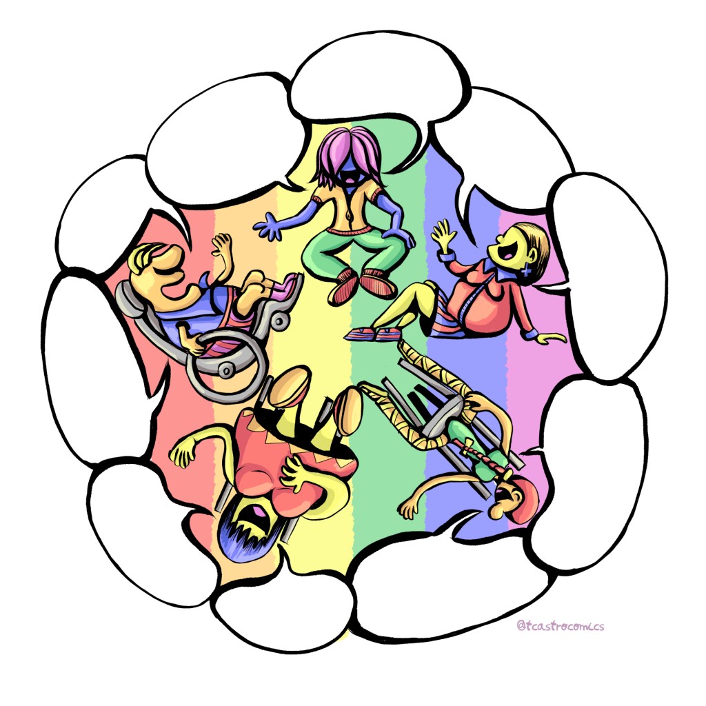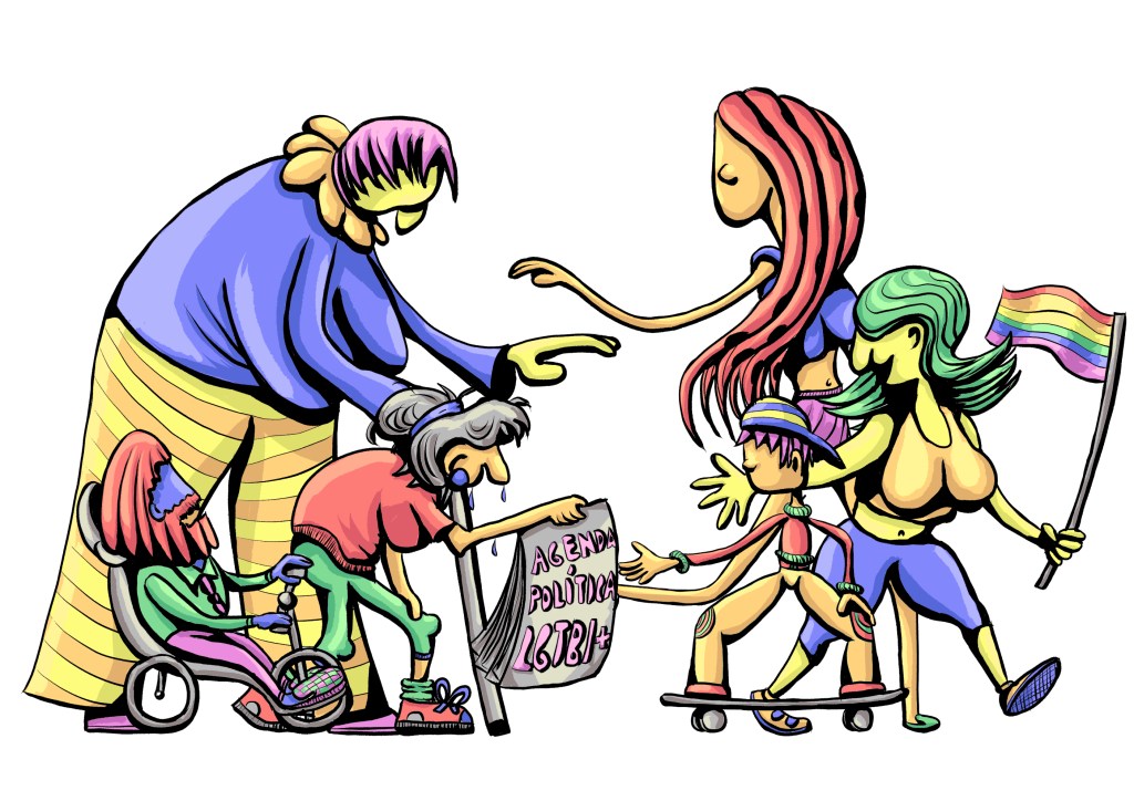 Ilustraciones que acompañan las conclusiones del «I. Encuentro Internacional de Organizaciones que defienden los derechos del colectivo LGTBI+» organizado por Gehitu Elkartea y Mugen Gainetik.
