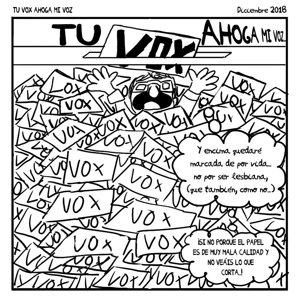 Hace unos años empecé un nuevo proyecto en Instagram donde empecé a publicar viñetas en blanco y negro sobre las realidades de las mujeres lesbianas (principalmente) y del colectivo LGTBI siempre con humor. En el 2019 recopilé varias de esas viñetas en un fanzine que ya está agotado, pero se pueden ver varias de esas viñetas en instagram, en @lesbianismoparaprincipiantas